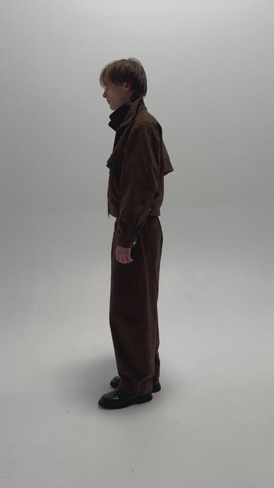 Note, this silhouette is slightly wider through the legs when compared to our Dart-Knee Pleated Trousers.