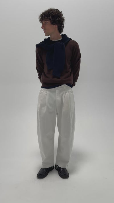 Double-pleats + semi-elasticated waistband